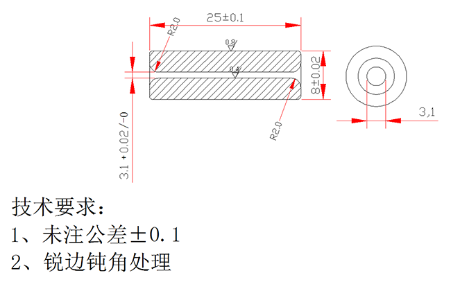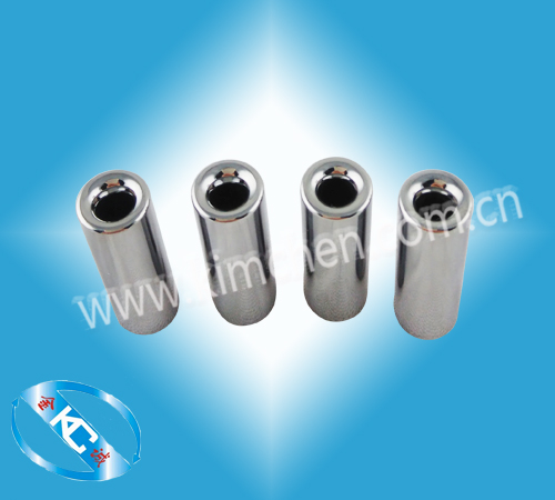 超硬質合金線嘴:此產品以超細顆粒碳化鎢為材料精密加工而成,其硬度高達HRA90以上,搞彎度高達2300N/mm以上。采用專用設備進行精密磨削加工和內孔精密研磨處理,使內孔粗糙度達到Ra0.1,兩端R處粗糙度高達Ra0.025,;兩端出入線口曲率半徑科學設計,保證過線順暢自然,與紅寶石相比,因采用整體材料加工,線嘴孔內無臺階,改善了易彎堵塞的現象。